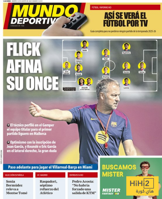 هاي كورة- تصدر هانسي فليك مدرب برشلونة غلاف صحيفة موندو ديبورتيفو الاسبانية اليوم الثلاثاء 12 اغسطس .
