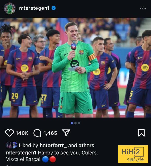 شتيغن كتب على منشوره : “سعيد برؤيتكم كوليز .. فيسكا البارسا”.