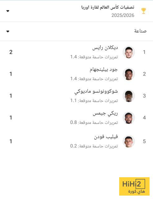 وقبل اللقاء، يتصدر ديكلان رايس قائمة أكثر لاعبي إنجلترا صناعةً للأهداف في التصفيات، بعدما صنع هدفين حتى الآن.
