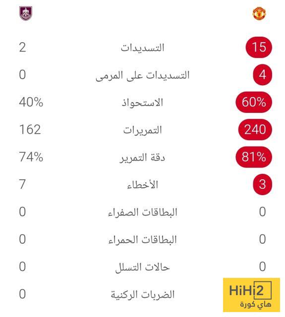 إحصائيات الشوط الأول لمباراة مانشستر يونايتد وبيرنلي في الدوري الإنجليزي