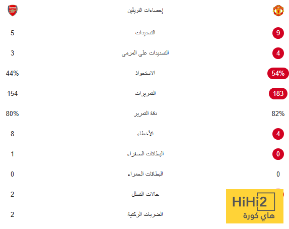 إحصائيات الشوط الأول من قمة اليونايتد وأرسنال في الدوري الإنجليزي