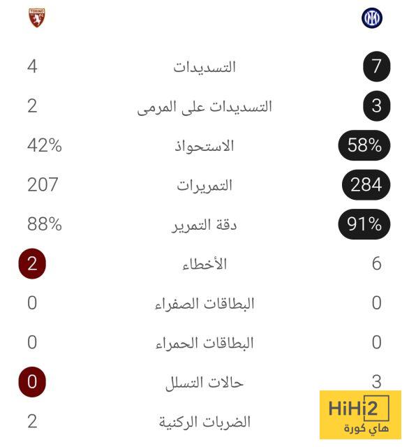 إحصائيات الشوط الأول من مباراة إنتر ميلان وتورينو في الدوري الإيطالي