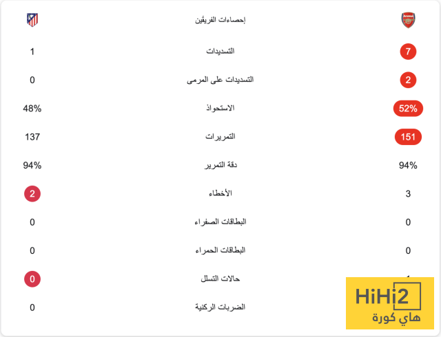 إحصائيات نصف ساعة من مباراة أرسنال وأتلتيكو مدريد