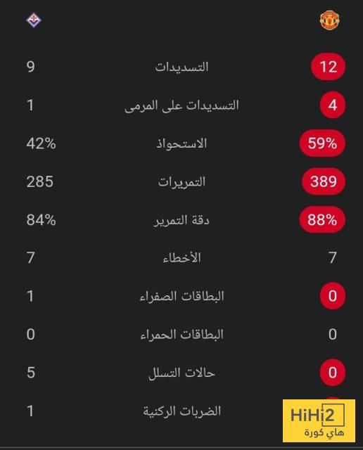 إحصائيات 75 دقيقة بين مانشستر يونايتد و فيورنتينا