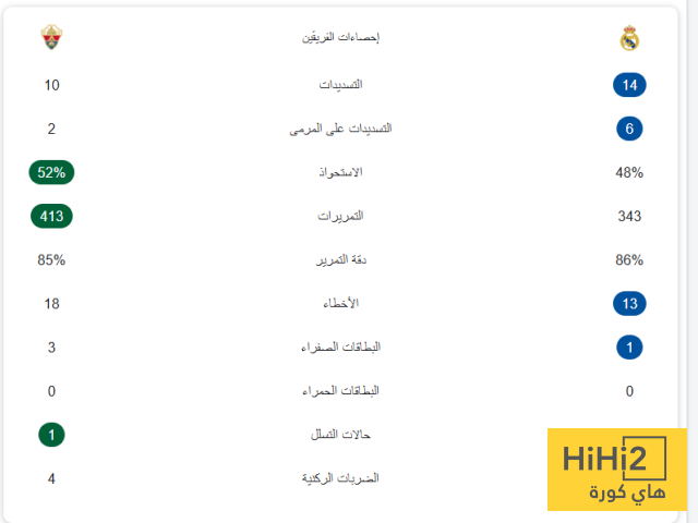 احصائيات مباراة ريال مدريد و التشي في الدوري الاسباني