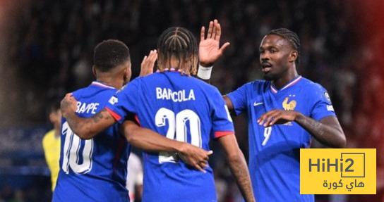 سجل اهداف فرنسا كيليان مبابي وباركولا في الدقائق 62،45.