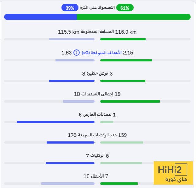 إليكم احصائيات المباراة: