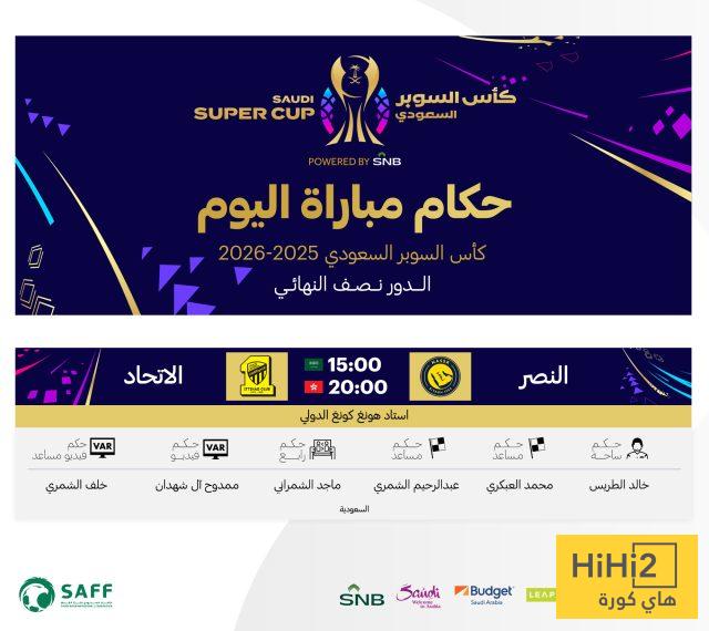 هاي كورة – أعلن الاتحاد السعودي لكرة القدم عن طاقم تحكيم لقاء النصر والاتحاد في نصف نهائي كأس السوبر “2025-2026″، المقرر إقامته على استاد هونغ كونغ الدولي.