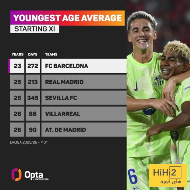 هاي كورة – أظهرت إحصائية لشبكة اوبتا أن برشلونة هو الفريق صاحب أقل معدل أعمار في التشكيلة الأساسية بعد انتهاء الجولة الأولى من الدوري الإسباني للموسم الحالي، حيث بلغ متوسط أعمار لاعبيه 23 عامًا و272 يومًا فقط.