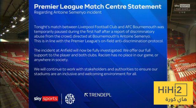 هاي كورة: أصدرت رابطة الدوري الإنجليزي الممتاز بيانًا رسميًا بشأن الواقعة التي تعرض لها لاعب بورنموث، سيمينيو، خلال مواجهة فريقه أمام ليفربول.