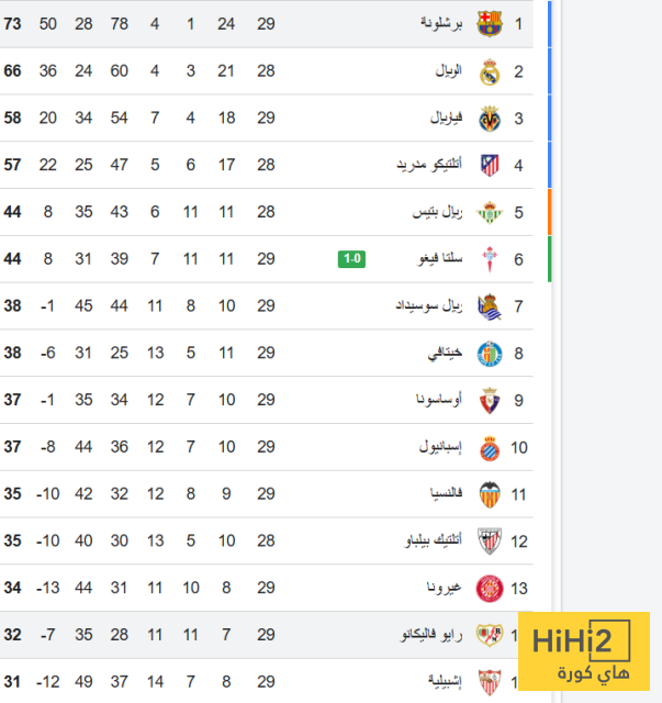 اليكم ترتيب الليغا :