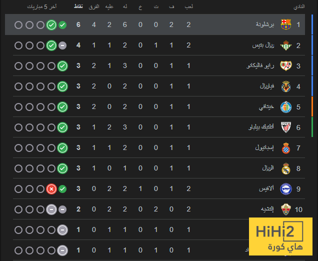 برشلونة يتصدر ترتيب الليغا الآن برصيد 6 نقاط بفارق نقطتين عن الوصيف ريال بيتيس، بينما يحتل ريال مدريد المركز الثامن حاليا.