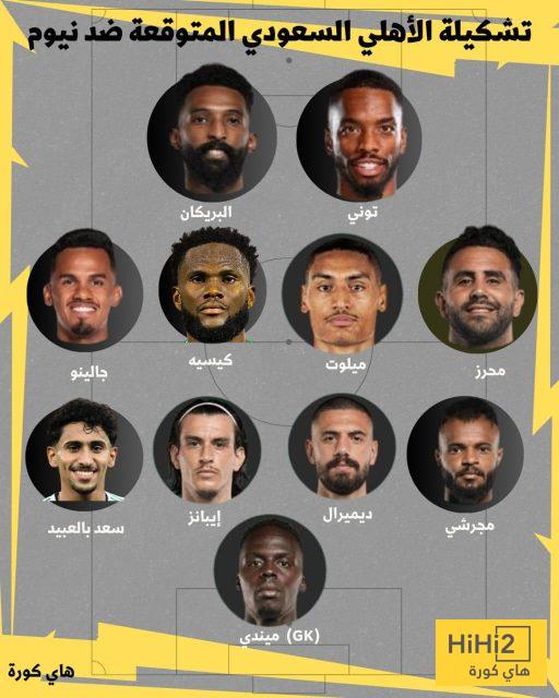 تشكيلة الأهلي المتوقعة امام نيوم