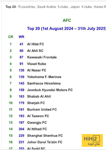 تصنيف جديد لأندية قارة آسيا.. نادٍ سعودي في الصدارة