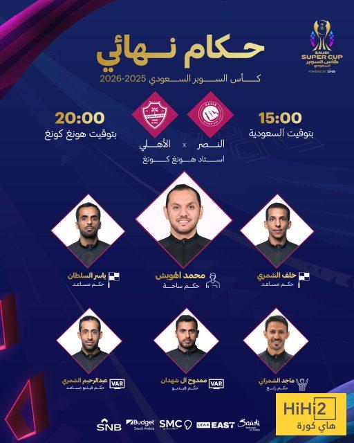 هاي كورة – أعلن الاتحاد السعودي لكرة القدم عن طاقم التحكيم الذي سيقود مواجهة القمة المرتقبة بين النصر والأهلي على استاد هونغ كونغ، وجاء على النحو التالي: