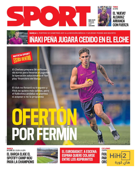 هاي كورة- تصدر فيرمين لوبيز، نجم برشلونة الشاب، غلاف صحيفة سبورت الكتالونية اليوم الاربعاء 27 اغسطس 2025، بعد حصوله على عرض مغري للرحيل عن البارسا خلال هذه الايام.