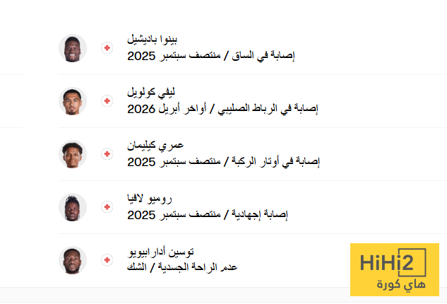 فيما يلي قائمة غيابات البلوز عن اللقاء:-