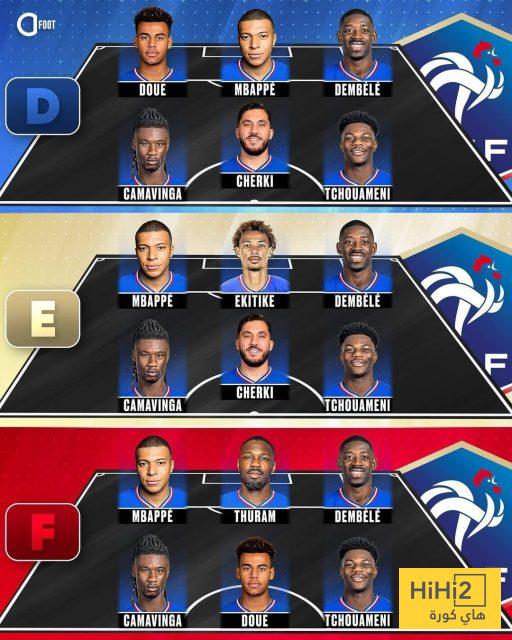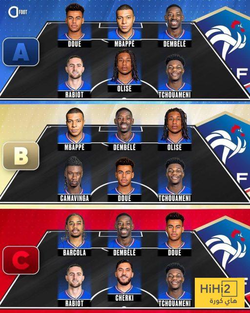 الصورة المرفقة توضح الثلاثيات الهجومية المحتملة للمنتخب الفرنسي خلال تصفيات و نهائيات مونديال 2026 على ضوء التعداد الحالي .
