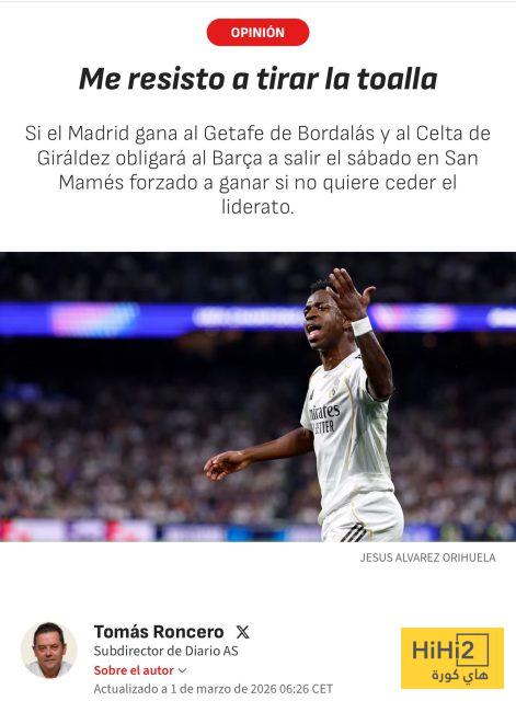 هاي كورة ( مقال خاص بالصحفي المدريدي توماس رونسيرو صباح اليوم )