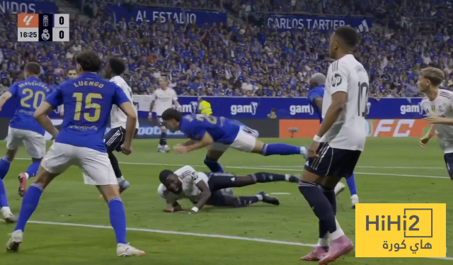 ها كورة-  خلال ضربة ركنية سقط مدافع الريال انطونيو روديغر بأرضية الملعب داخل منطقة الجزاء بعد احتكاك مع لاعب اوفييدو .