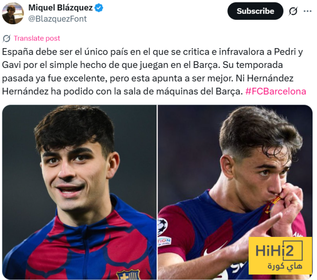 “يبدو أن إسبانيا هي الدولة الوحيدة التي تُنتقد وتُقلل من شأن بيدري وغافي لمجرد أنهما يلعبان في برشلونة. موسمهما الماضي كان ممتازًا بالفعل، لكن هذا الموسم يبدو أنه سيكون أفضل، حتى هيرنانديز هيرنانديز لم يتمكن من مواجهة “غرفة المحركات” في البارسا.”