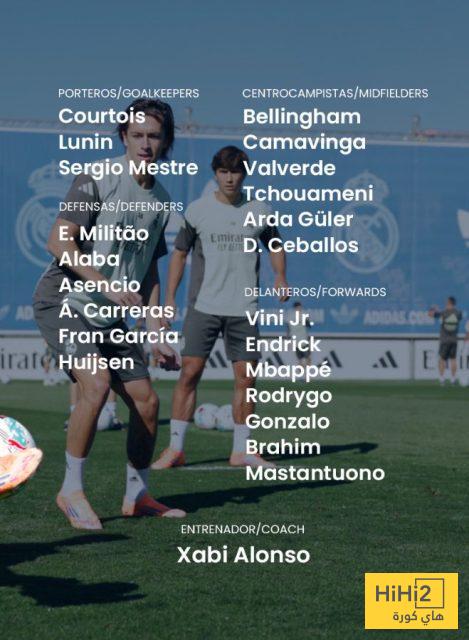 هاي كورة – أعلن المدرب الإسباني تشافي ألونسو، عن قائمة ريال مدريد الرسمية لمواجهة نظيره فياريال، غدًا السبت، على ملعب سانتياغو برنابيو، ضمن منافسات الجولة الثامنة من بطولة الليغا.